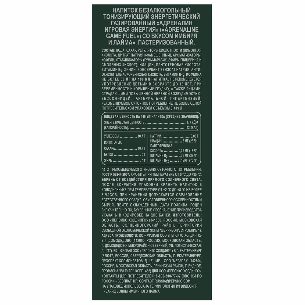 Состав: Вода подготовленная, сахар, регуляторы кислотности кислота лимонная и цитрат натрия 3-замещенный, таурин, ароматизаторы натуральные, кофеин натуральный, стабилизаторы гуммиарабик и эфиры глицерина и смоляных кислот, антиокислители кислота аскорбиновая . . .