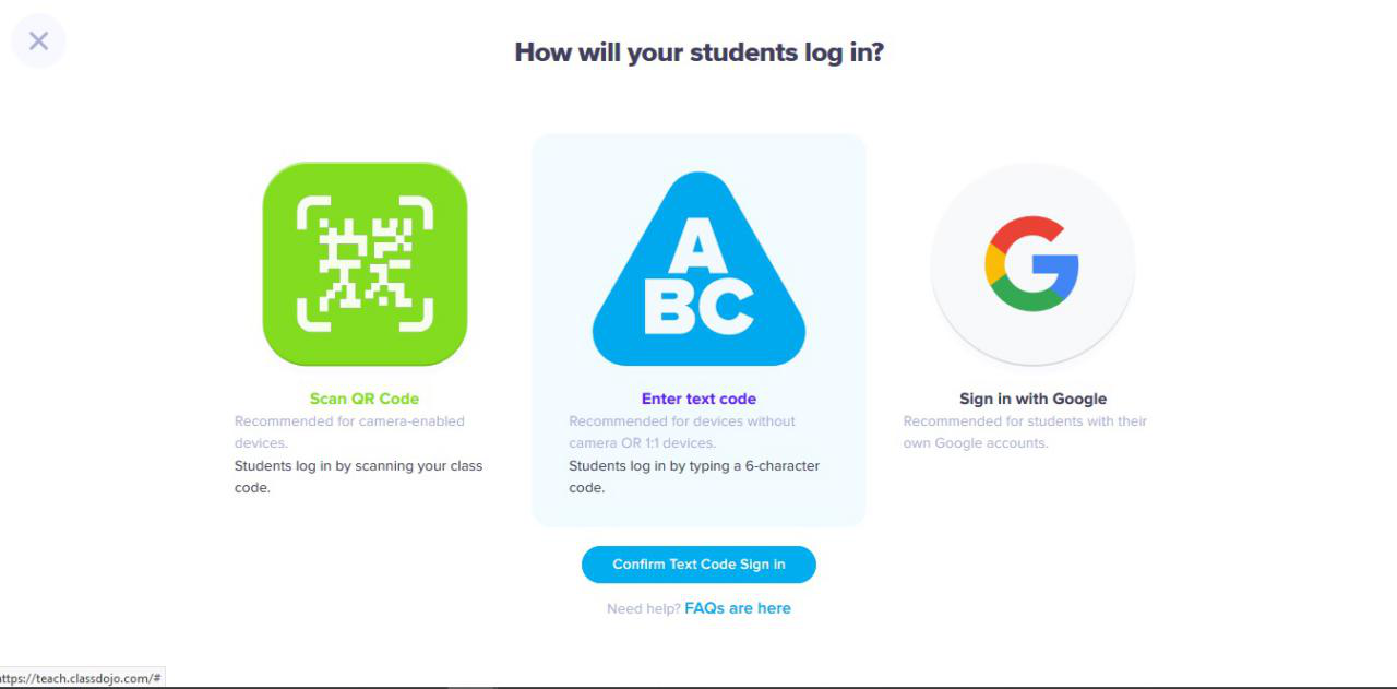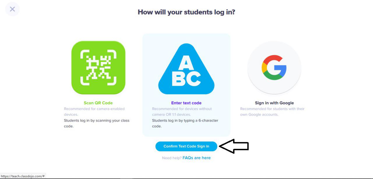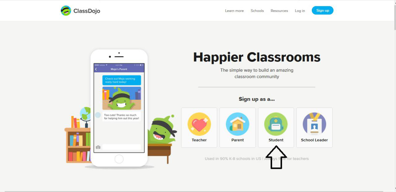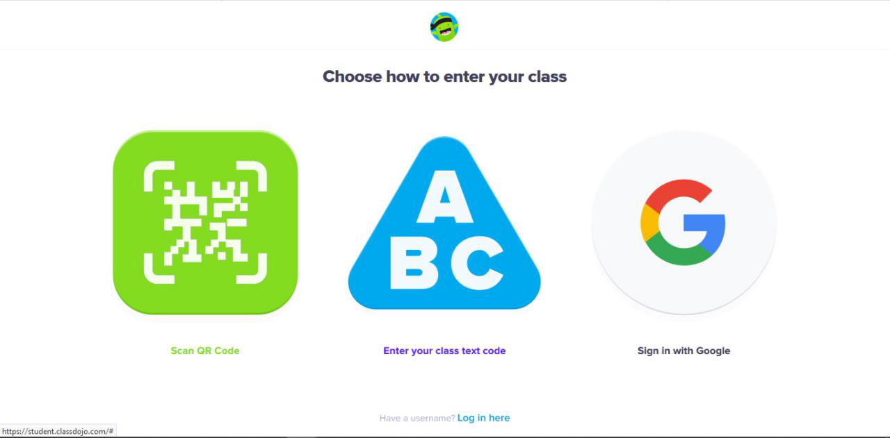 1. Pastikan murid anda masuk link class dojo. Murid dikehendaki klik icon student. Lihat gambar di atas.