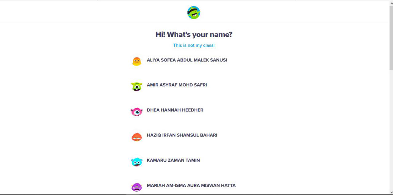 4. Minta murid mencari nama mereka dan klik pada nama mereka.