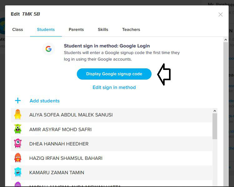 3.3.2. Ini code untuk murid anda taip apabila sign in melalui google