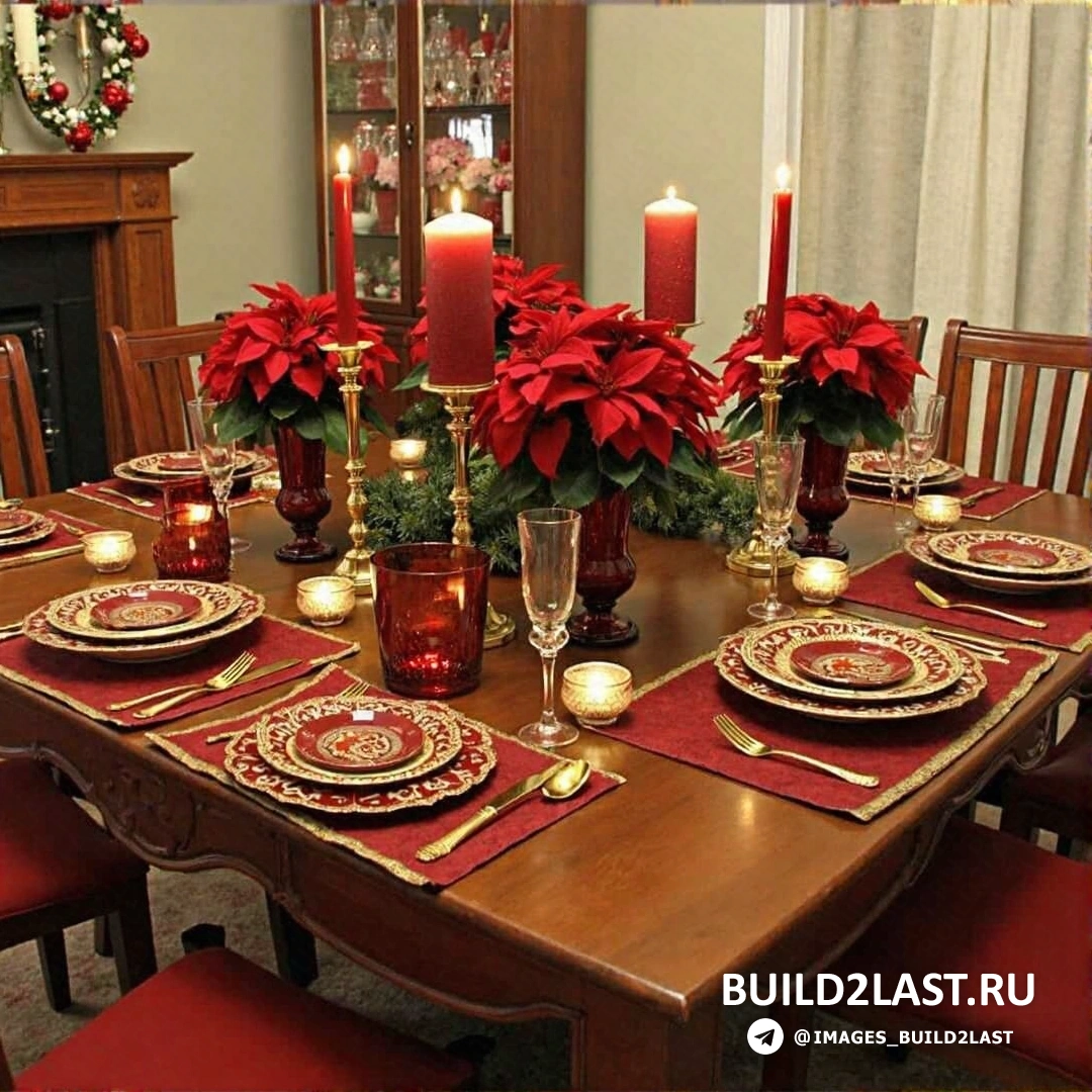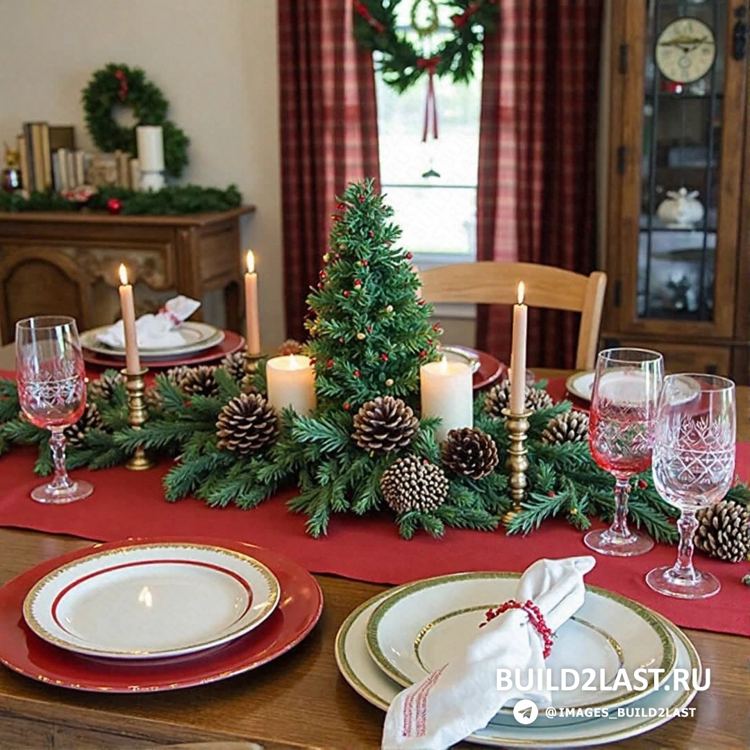 Вот несколько идей для праздничного декора в классических красно-зелёных тонах: