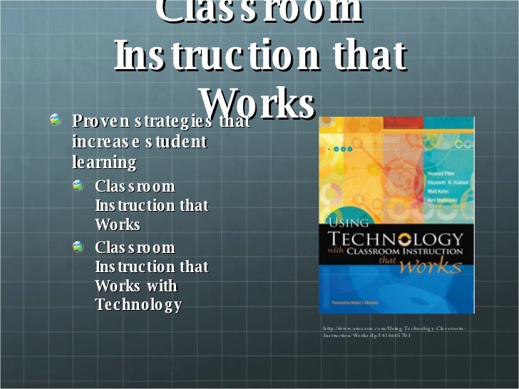 Перевести · Classroom Instruction that Works: Research-Based Strategies for Increasing Student Achievement (Pearson Teacher Education / Ascd College Textbook) $29.57 In stock. This is a perfect resource for all educators seeking research on the best strategies for raising student achievement through classroom instruction.