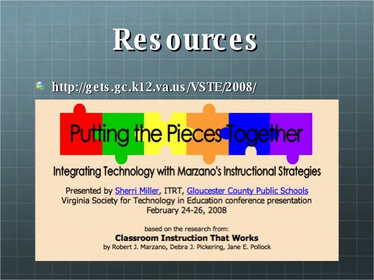 Перевести · Classroom Instruction That Works: Research-Based Strategies for Increasing Student Achievement. Marzano, Robert J.; Pickering, Debra J.; Pollock, Jane E. This book provides information on what works in education, how teachers can find what works, how educational research can find its way into classrooms…