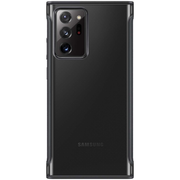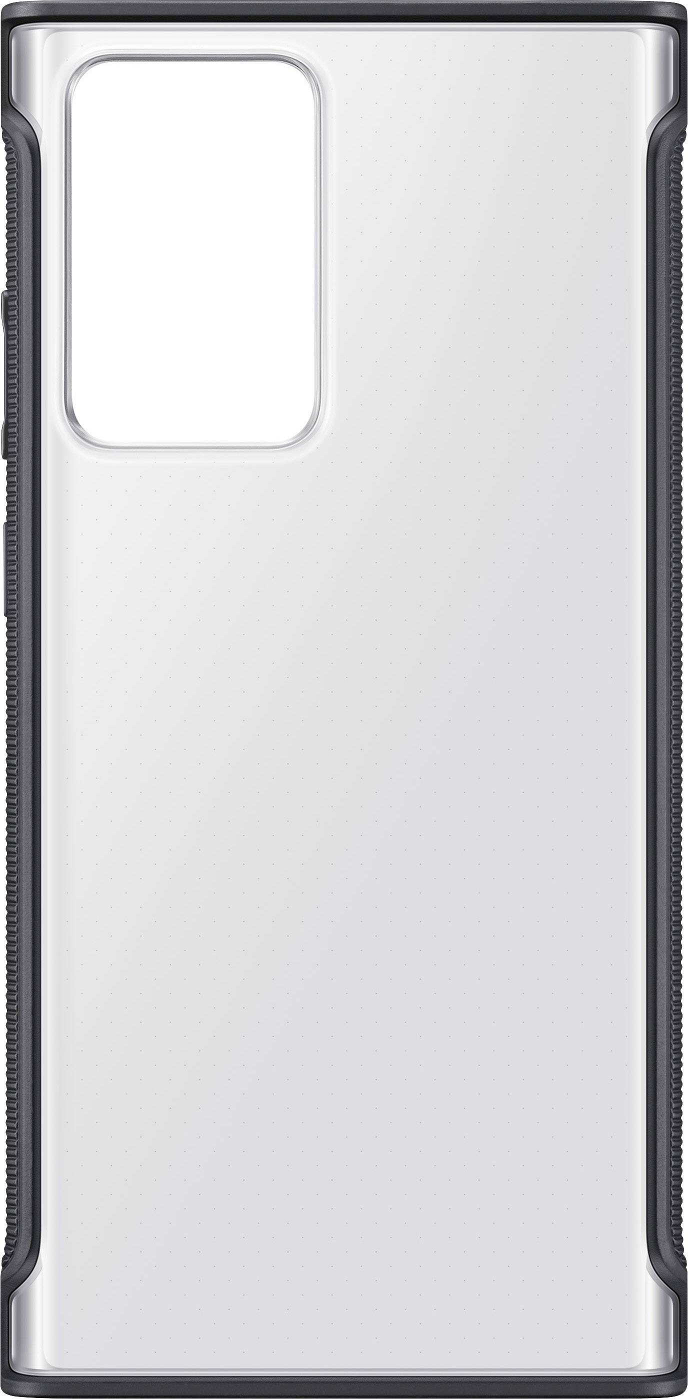 Color: Black . The Samsung Galaxy Note20 Ultra Clear Cover is an easy-to-hold, clear case that protects your phone without sacrificing style . It combines edge to edge TPU protection with minimal bulkiness to show off the most of your phone's design . Transparent rear design to preserve the natural look of your phone .
