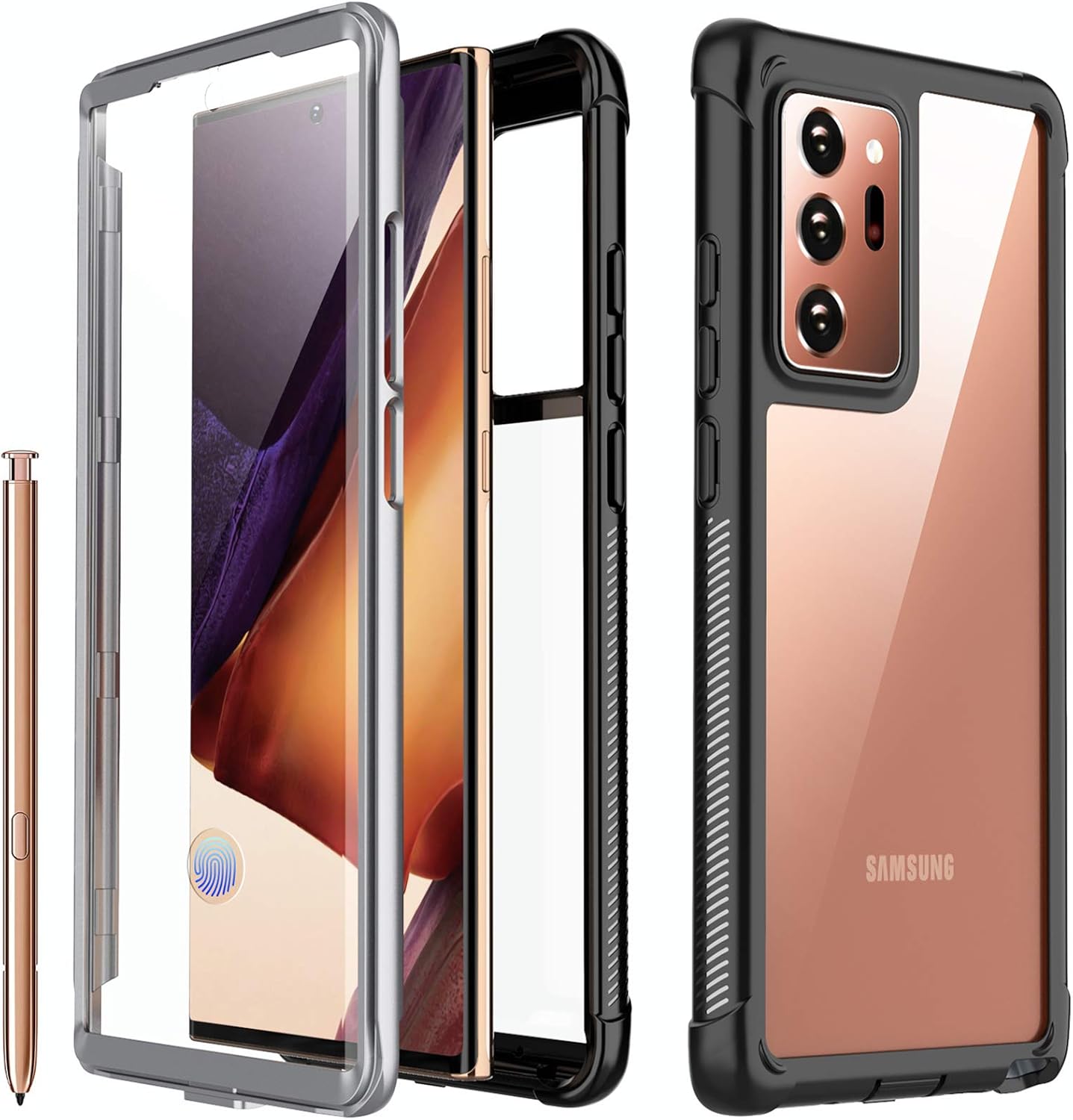 iMangoo Heavy Duty Clear Case . iMangoo Heavy Duty Clear Case is one of the cheapest clear case available for the Samsung Note 20 Ultra , with the same protective abilities . The Dual-Layer soft TPU shell flexibly covers the device from the backside, with precise cut-outs, and easy snap on and snap off the design .