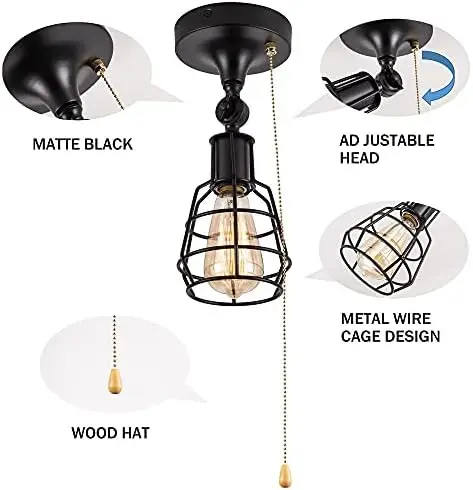zPRFEahJЗдесь вы сможете купить Close to Ceiling Light with Pull Chain, 3 Lights Black Industrial Semi Flush Mount Pull String Ceiling Fixture Rustic Metal Wire с бесплатной доставкой до вашего почтового отделения.