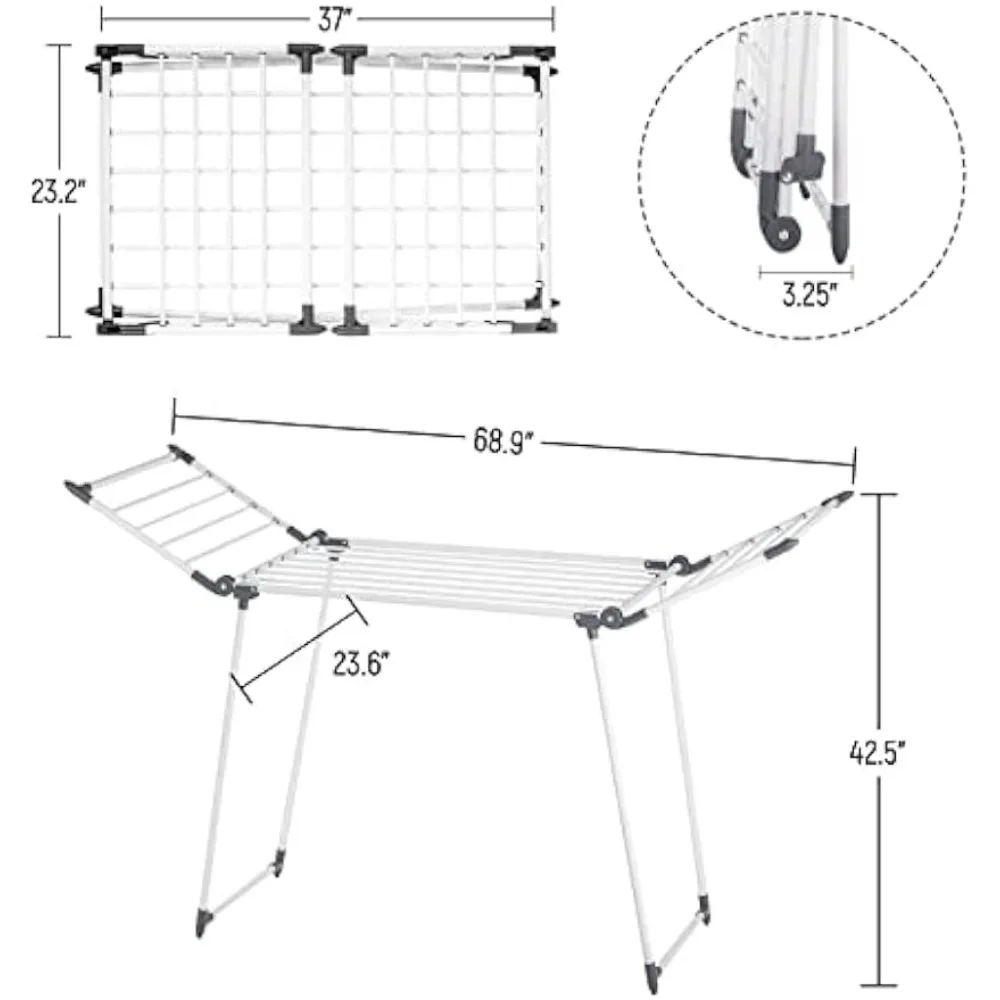 "Clothes Drying Rack, Gullwing Laundry Rack, Collapsible, Space-Saving Laundry Rack, with Sock Clips,for Clothes,68.9*23.6*42.5in" * Buy Now With Free Shipping Just For $59