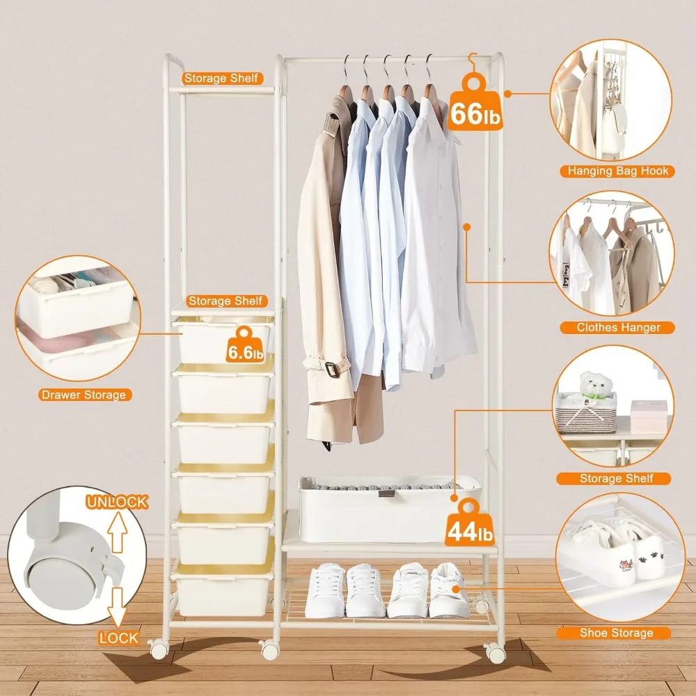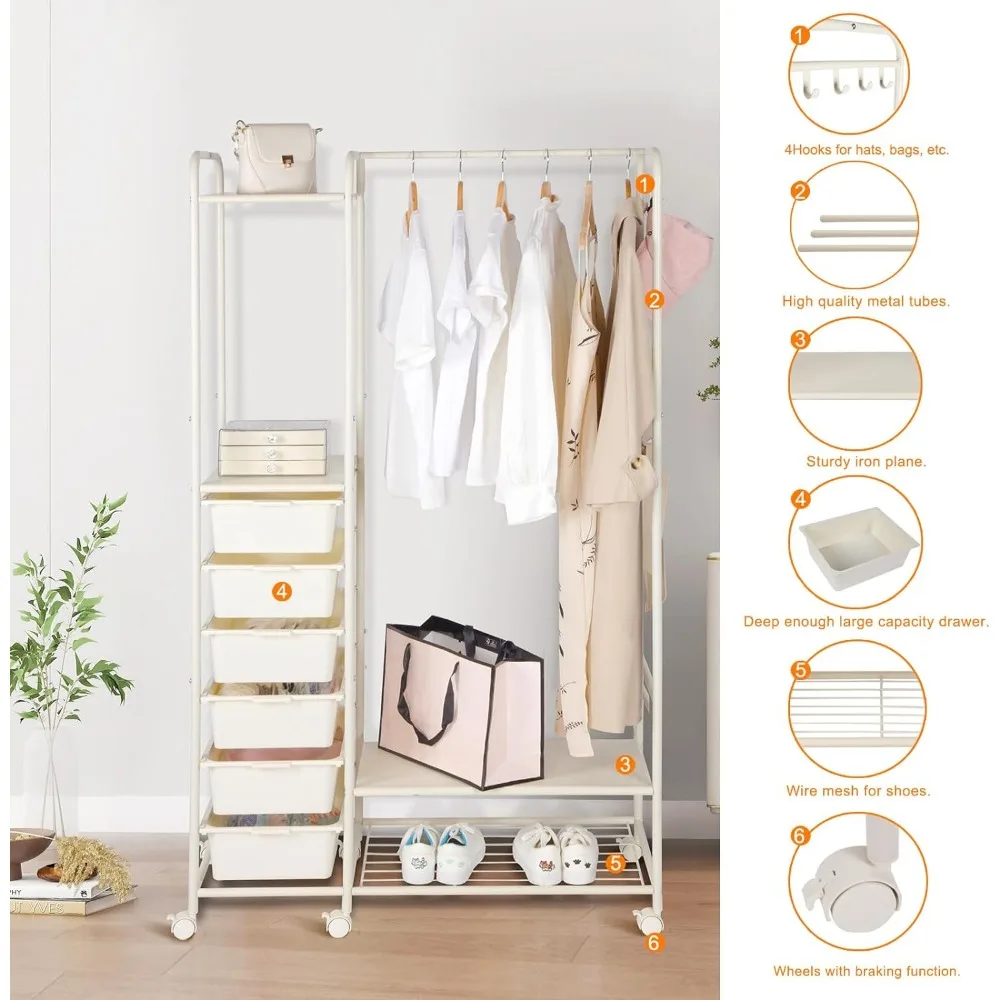 mAodfMqPUHere you can buy Clothes Rack with Drawers, 6 Side Drawers Rolling Hanging Garment Rack with Hooks Heavy Duty Metal Portable Clothes Organizer with free delivery to your post office.