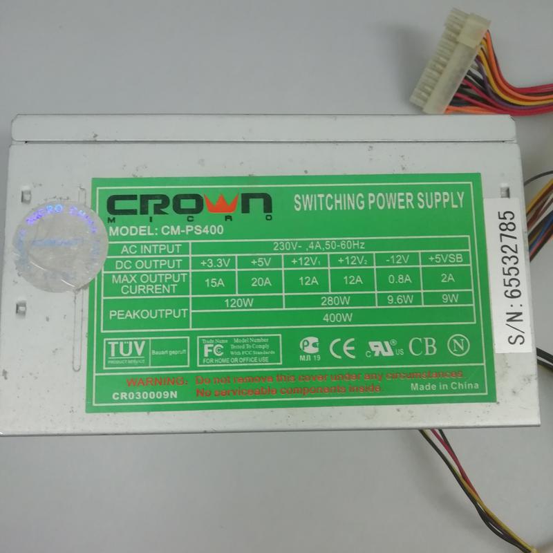 Но вот попался блок питания Crown CM-PS400 абсолютно новый хотя на плате написано (350ATX B-9), просто хозяин этого блока желает его выкинуть, а мне не хочется всё таки новый .