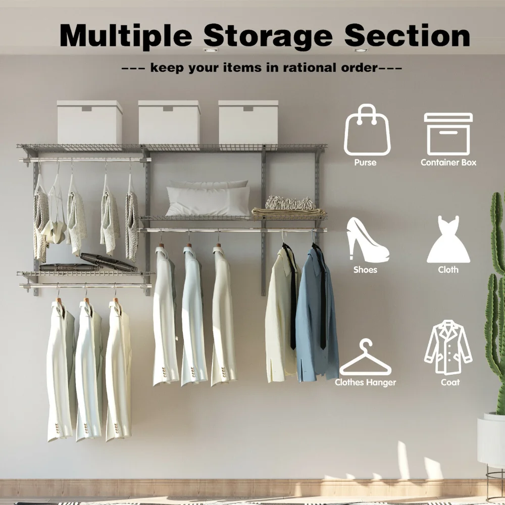 «Coat Rack Clothing Rack Simple Wardrobe Stand Floor Hanger Storage 3 To 5 FT Wall-mounted Closet Systems with Hang Rod, Gray» по лучшей цене на рынке! Всего за 56$ (5320рублей)