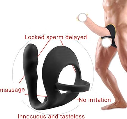 [Double Cock Ring] Powerful vibrating prostate massager with attached double cock ring for blended stimulation . Double cock ring wraps around your cock and balls to potentially increase your erection size, delay your ejaculation, and ramp up the ecstasy of your orgasms . Perfect for maximum satisfaction alone or with a partner .