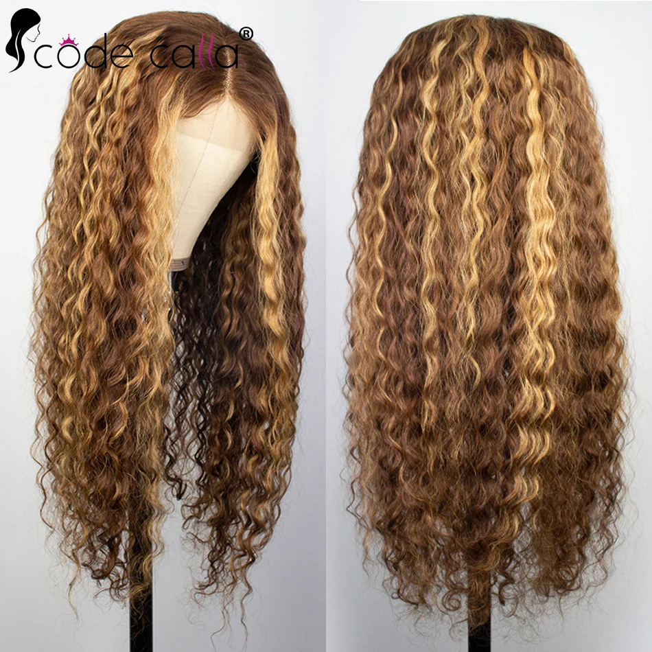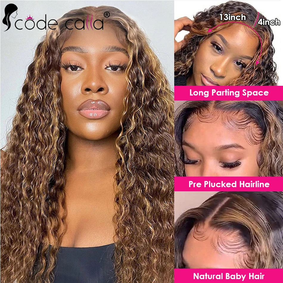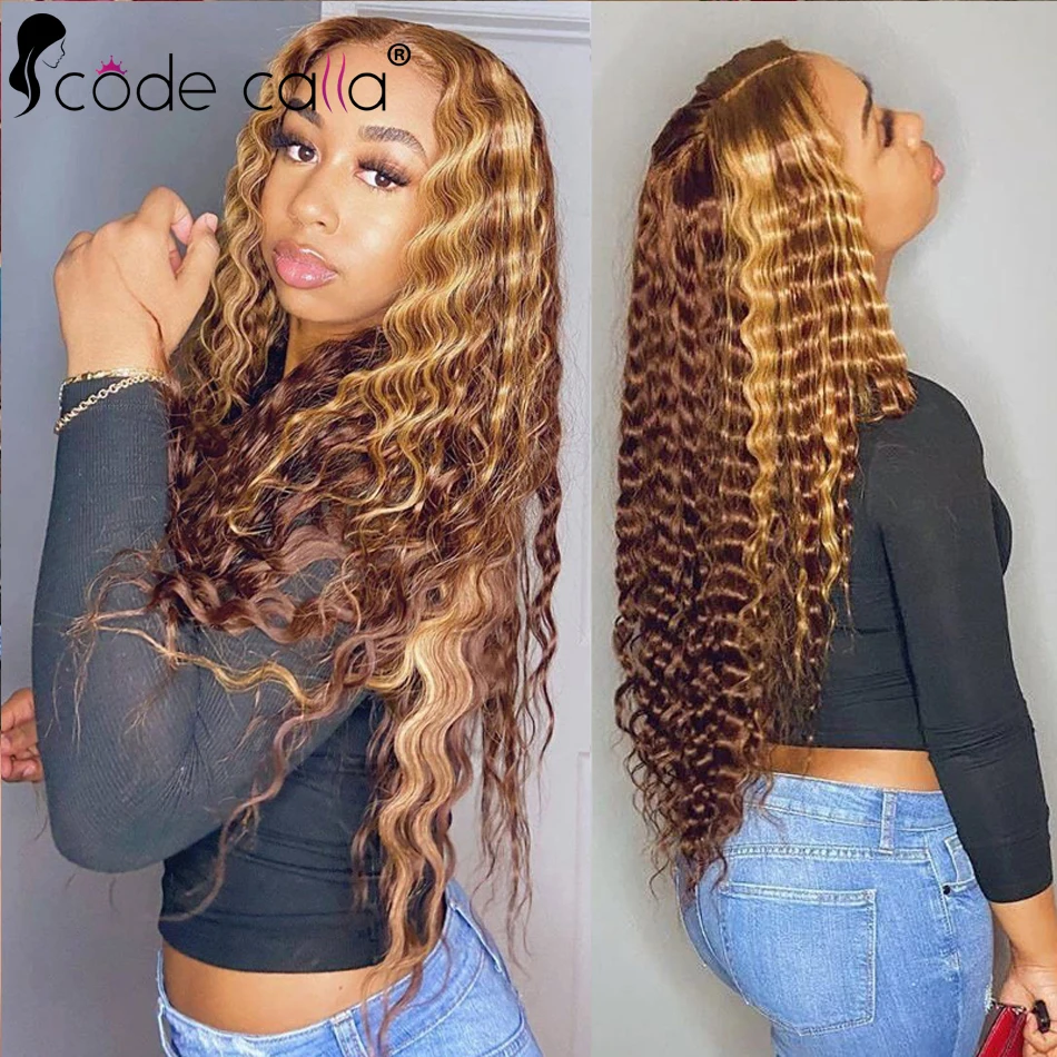 Code Calla Highlight Wig Human Hair Deep Wave Frontal Wig T Part Ombre Transparent Lace Front Wig Curly Human Hair Wig 30 Inch - Купить с бесплатной доставкой