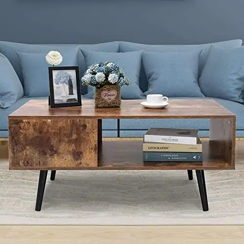 "Coffee Table, Mid-Century Coffee Table with Storage Open Shelf, Accent Cocktail Table for Living Room, Reception, Rustic Brown M" * Buy Now With Free Shipping Just For $61