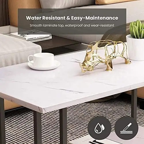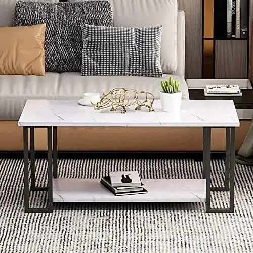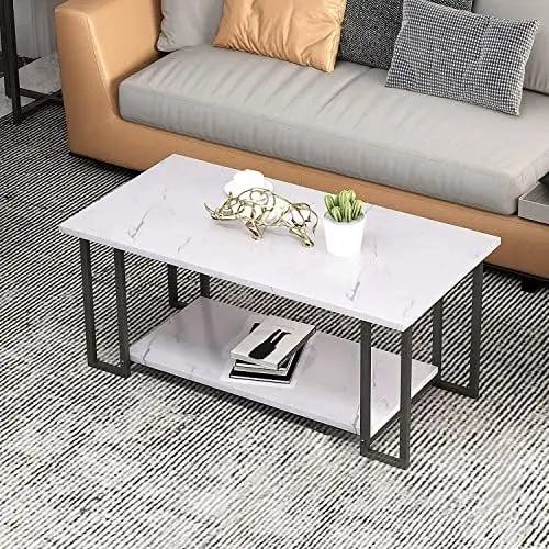 Coffee Table, Rectangular Coffee Table 2 Tier Living Room Table Metal Frame Sofa Side Tables Perfect for Living Room Accent Furn - Купить с бесплатной доставкой
