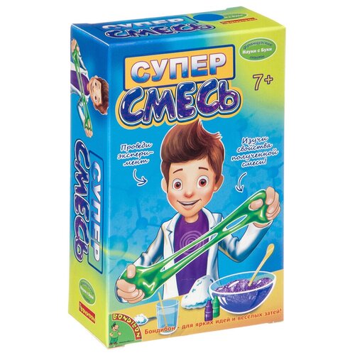 Le coffret "Super Mix" a été créé spécialement pour les jeunes amateurs d'expérimentations divertissantes et insolites. Tout en travaillant avec l'ensemble, les enfants pourront fabriquer du caramel amusant à partir de vrais polymères, ainsi que créer leur propre petit laboratoire chimique pour la production de substances collantes. Apprenez la chimie en jouant avec la série d'expériences sur l'hélium polymère de Bondibon ! Le kit contient tous les ingrédients nécessaires pour créer du slime qui brille dans le noir. De plus, vous aurez besoin de récipients pour remuer les lames et de gants jetables.