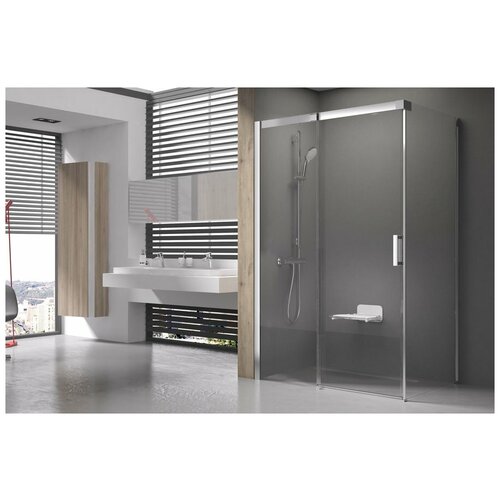 Coin de douche Ravak Matrix MSDPS 100x80 L 0WLA4U00Z1.Caractéristiques : Matériau du profilé : aluminium. Couleur du profil : satiné. Dimensions des coins (LxHxP) : 1000x1950x800 mm. Dimensions de réglage : 985-1005x785-805 mm. Largeur d'entrée : 429 mm. Vitrail : verre de sécurité transparent avec revêtement AntiCalc. Épaisseur du verre : 8 mm - élément fixe, 6 mm - mobile. Forme : rectangulaire. Couleur des accessoires : chrome. Modèle de porte : coulissante. Orientation : gaucher. Compris dans la livraison : Coin douche (profil, verre).