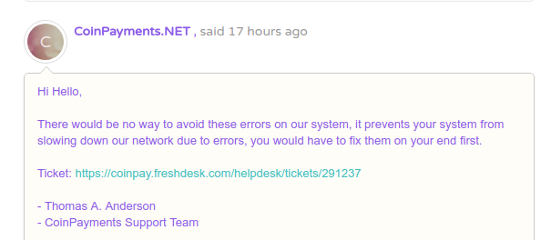 CoinPayments: Too many errors in the last two minutes from