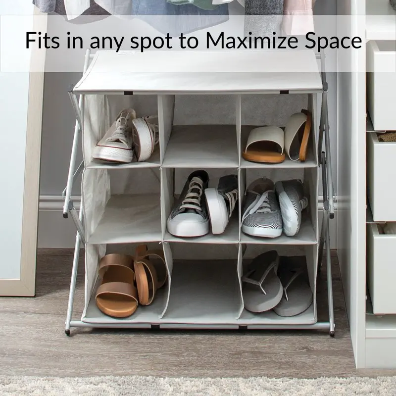 "Collapsible 9 Pair Shoe Rack in Grey" * Buy Now With Free Shipping Just For $34