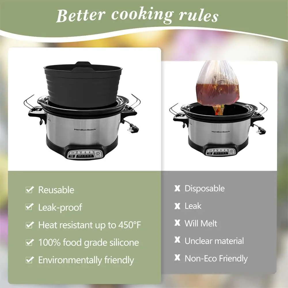 BCnykiQOHaHere you can buy Collapsible Slow Cooker Liners Silicone Divider Insert Food Grade Reusable Leakproof Slow Cooker For 6-8QT Kitchen Accessories with free delivery to your post office.