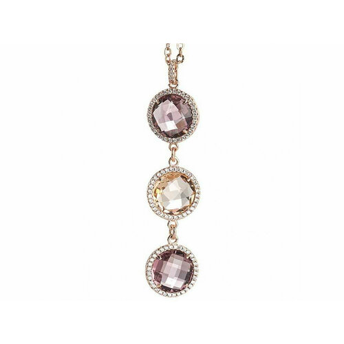 Collier en bronze plaqué or rose avec pendentif (6,5 cm de long) composé de cristaux et de zircons.