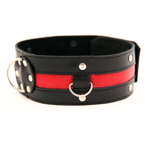 Le collier est en cuir véritable noir, décoré d'un insert en cuir rouge, de rivets et de trois demi-anneaux en métal. La ceinture permet de choisir la bonne taille, adaptée à un tour de circonférence de 33 à 40 cm. Une boucle en métal fixe solidement l'accessoire, et une doublure en cuir souple assure le confort. Un accessoire élégant vous aidera à transformer vos fantasmes érotiques en réalité. La largeur du col est de 5 cm, la largeur des bretelles est de 2 cm.Le collier est en cuir véritable noir, décoré d'un insert en cuir rouge, de rivets et de trois demi-anneaux en métal. La ceinture permet de choisir la taille souhaitée, adaptée à un tour de circonférence de 33 à 40 cm. Une boucle en métal fixe solidement l'accessoire et la doublure en cuir souple offre un confort optimal. Un accessoire élégant vous aidera à transformer vos fantasmes érotiques en réalité. Largeur du collier - 5 cm, largeur de la sangle - 2 cm. Fabricant : BDSM Arsenal ; Matériau : cuir véritable ; Emballage : sans emballage ; Poids : 480 ;