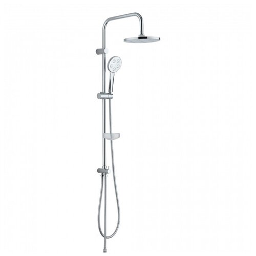 Couleur : chrome Matériau : laiton, plastique Barre de douche : 970 mm avec support mobile et possibilité d'installation dans d'anciens trous Douche de tête : 225 mm de diamètre avec effet pluie tropicale Douchette à main : 110 mm avec 1 mode de fonctionnement, avec effet massage et jet amélioré et support réglable en hauteur et en inclinaison Les douchettes de tête et à main sont équipées d'un système de nettoyage facile pour éliminer le calcaire Tuyau : 1500 mm en tresse métallique avec protection anti-torsion Débitmètre et porte-savon en plastique inclus