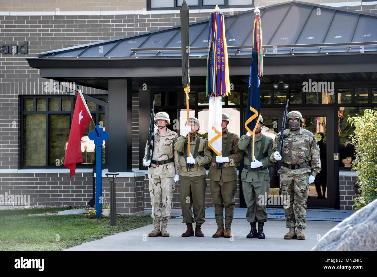 organizations may be carried in ranks (massed color guard ) arranged behind the parent organization's color guard . 9 . When the organizational colors are draped in mourning, the mourning streamer shall consist of a black crepe streamer 7 feet long and about 12 inches wide . A bowknot, the loops of which are 6 inches long, is tied in the center .