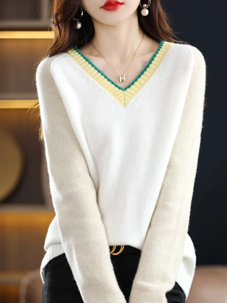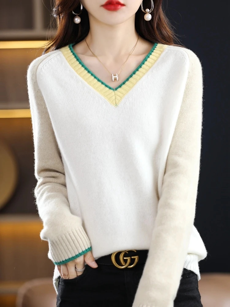 jtVfbXehwfДолго искали Color-Matched Wool Sweater For Women Autumn And Winter New V-Neck Fashion Age-Reducing Pullover Sweater Lazy Wind Bottoming Shir, но не могли найти? Предоставляем вашему вниманию Color-Matched Wool Sweater For Women Autumn And Winter New V-Neck Fashion Age-Reducing Pullover Sweater Lazy Wind Bottoming Shir по лучшей цене на рынке!