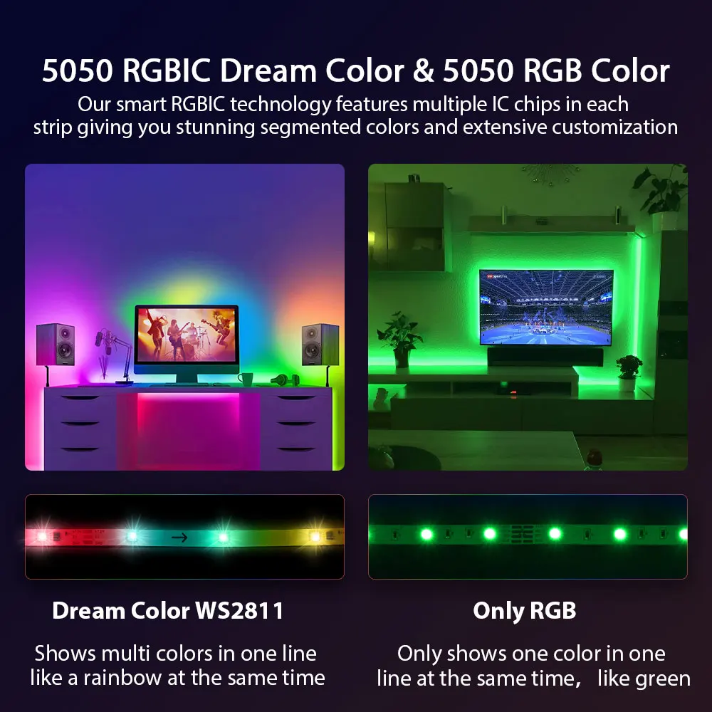 "ColorRGB, Dream Color LED Strip Lights,5M Rainbow Waterproof Chasing Multicolor Effect,with Remote Controller, 11 Scene Modes" * Buy Now With Free Shipping Just For $25