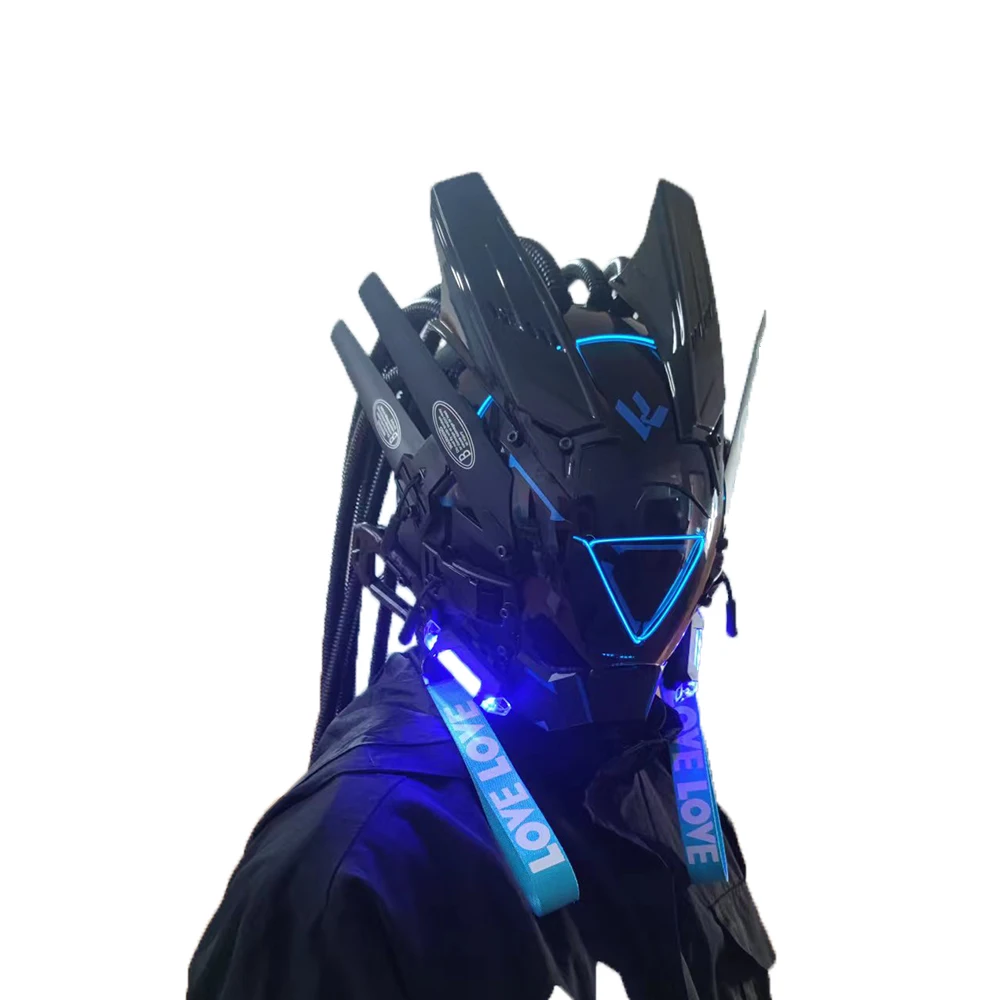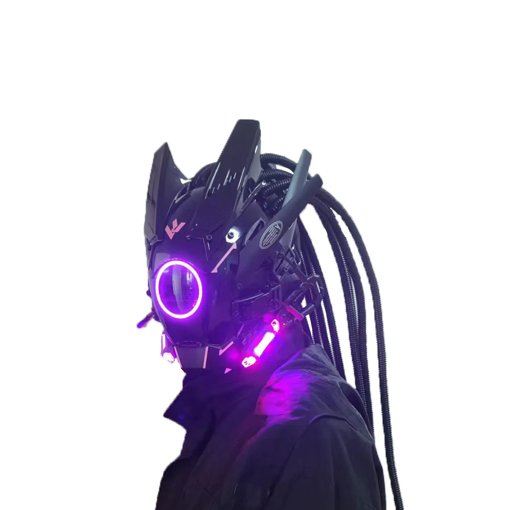 Colorful Pipe dreadlocks Cyberpunk Mask Cosplay Shinobi Mask Special Forces Samurai Masks Triangle Project El With Led Light - Купить с бесплатной доставкой