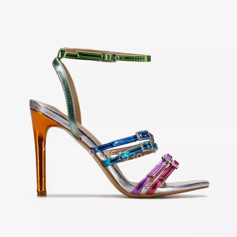 wPyjQzlOKjHere you can buy Colorful Stiletto Striped Sandals Women Bright Rainbow Heel Long Rope Belt Buckle Graffiti Mixed Color Block Round Designer Shoe with free delivery to your post office.
