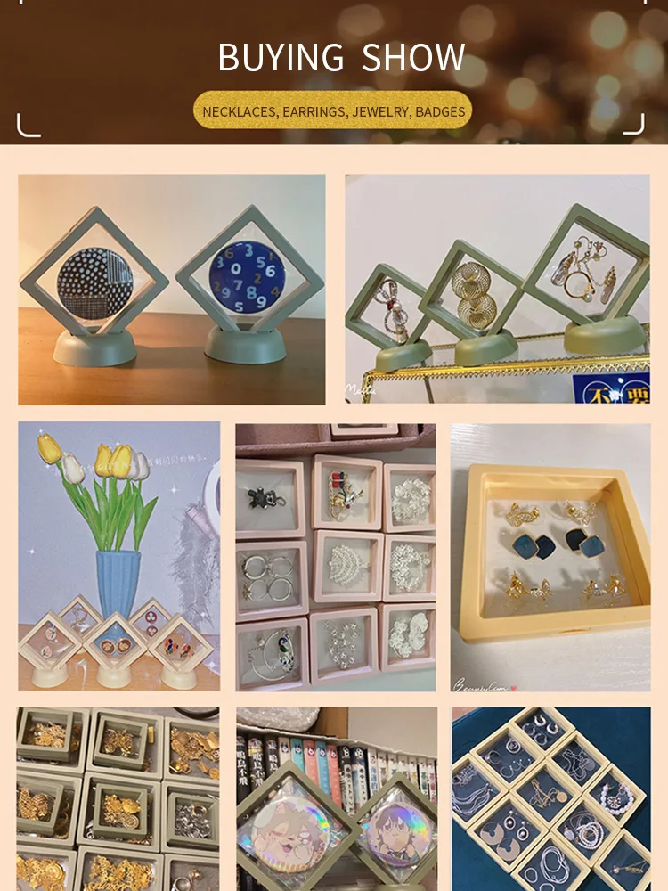 DbQNJSIZVHere you can buy Colorful Travel PE Film Jewelry Storage Box Set Rings Bracelet Coin Gems Organizer 3D Floating Frame Dustproof Exhibition Decor with free delivery to your post office.