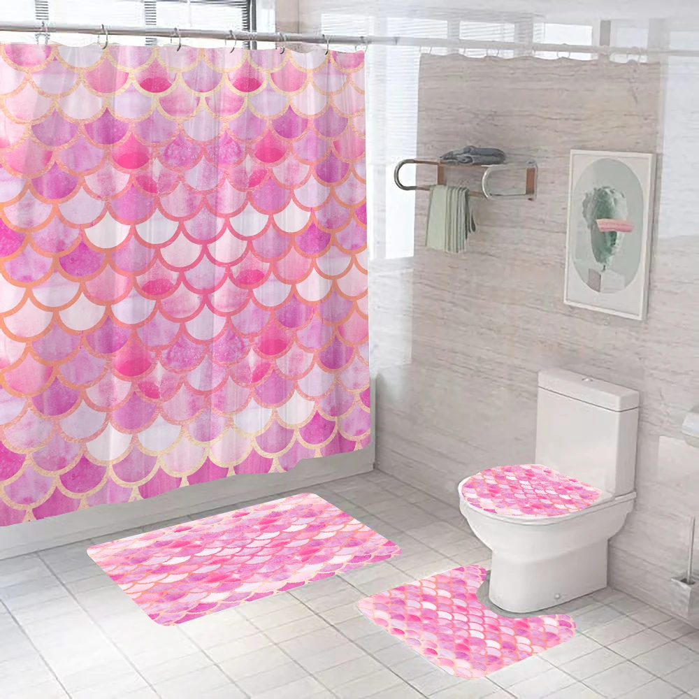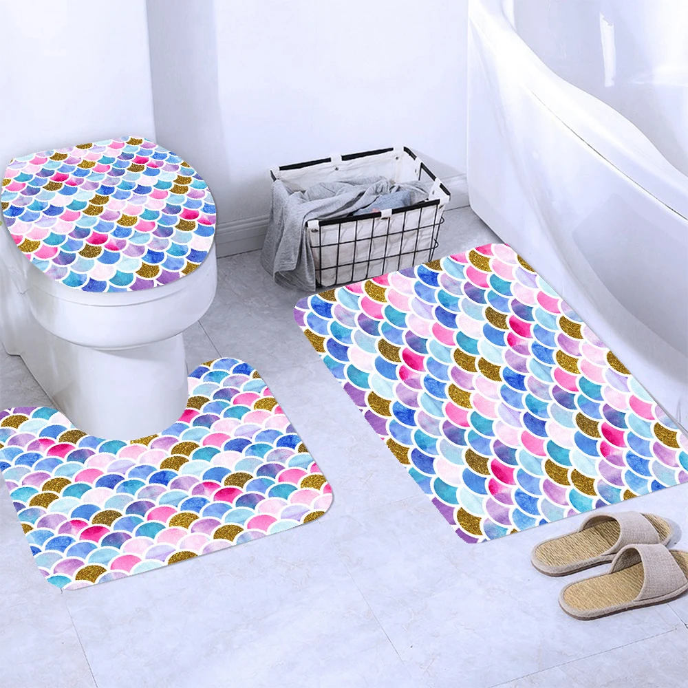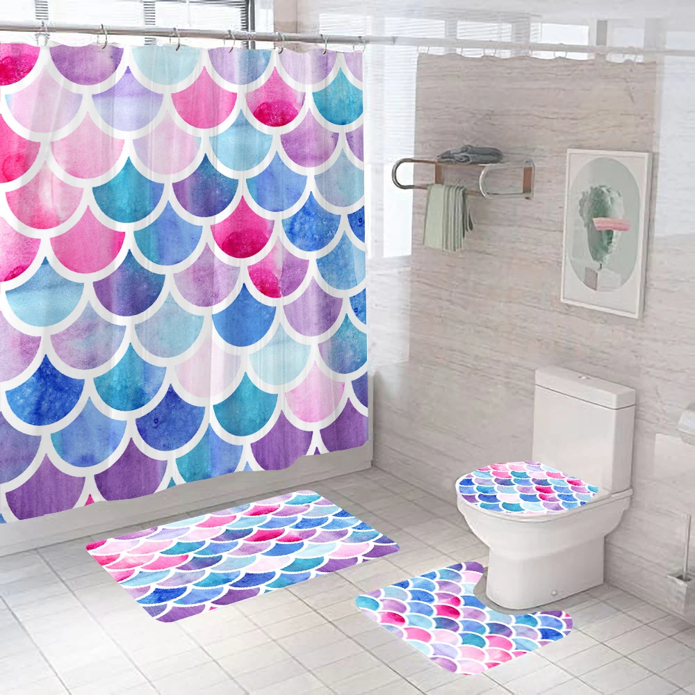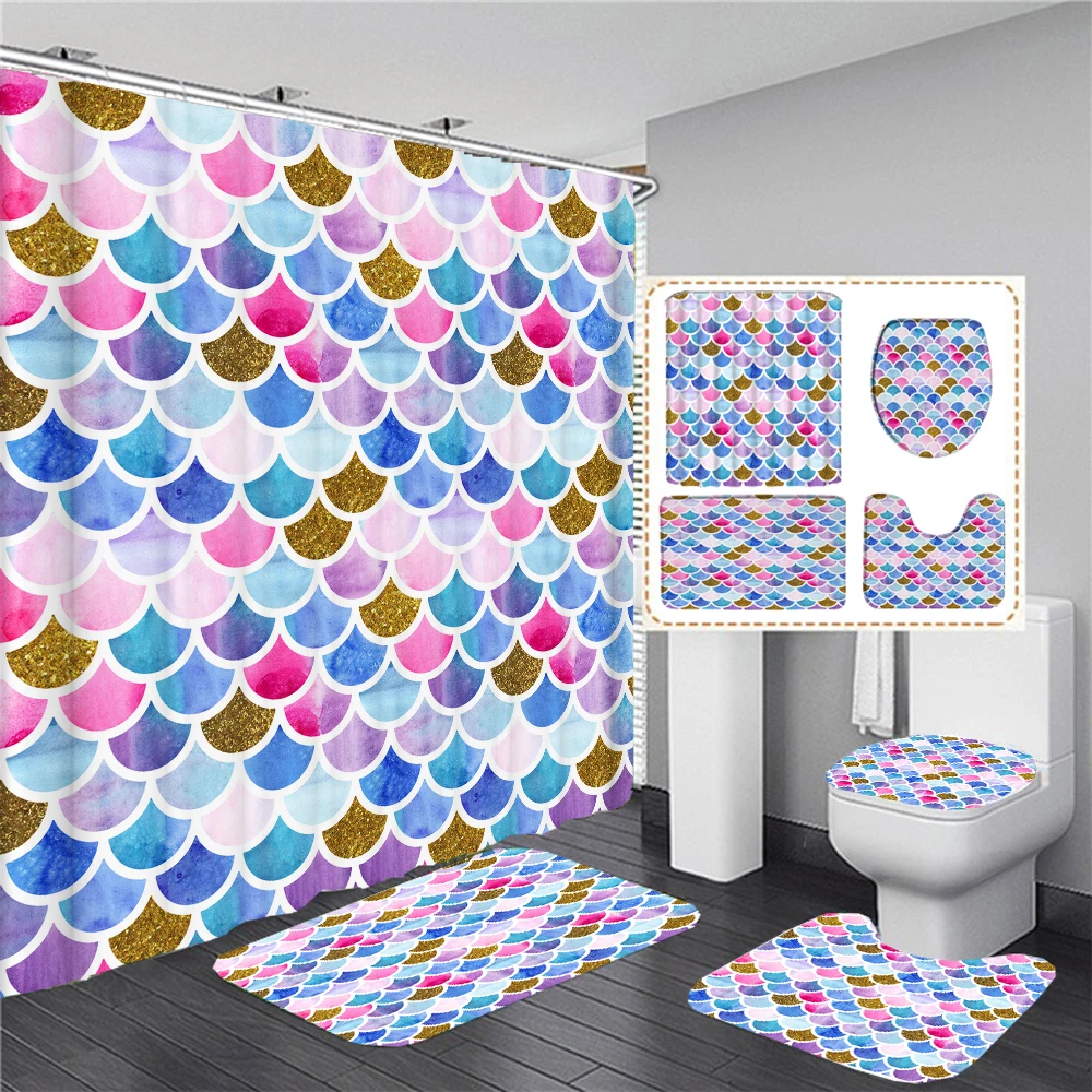 ZRrbkoASZHere you can buy Colourful Fish Scale Wave Geometric Pattern Shower Curtain Bathroom Curtains Set Geometric Bath Mat Rug Carpet cortina de ducha with free delivery to your post office.