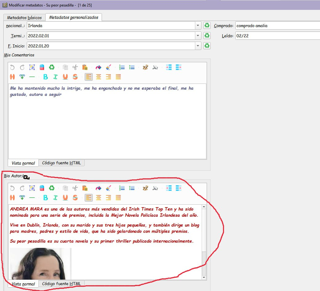No comunicara con nuestro ordenador, buscamos la carpeta nueva que se llama Bio Autor buscamos dentro la foto de nuestro autor y encima le damos doble click, veremos que sale debajo del texto en nuestra ficha