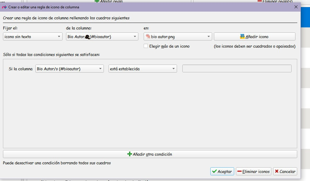 3) Apariencia—>Iconos de columna—>Añadir regla