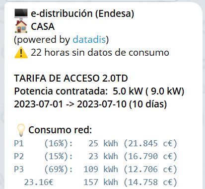 ⚠️ La distribuidora a veces no responde a Datadis y no envía las lecturas solicitadas.