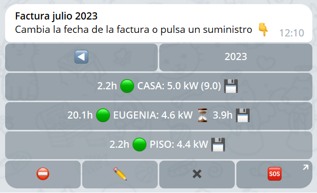 Selecciona el CUPS de la lista mostrada y el Bot te enviará el .csv (sólo con ⭐️ Premium) correspondiente a la fecha indicada y te calculará la factura exacta.