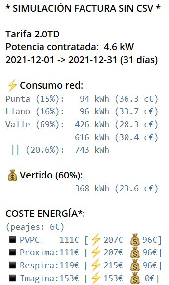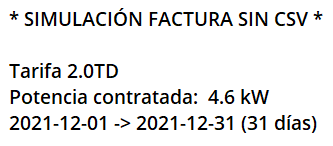 Si quieres una simulación exacta del importe de tu factura y dispones del archivo .csv de tus consumos, mejor usa el Comando Factura.