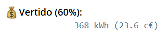 (60%) porcentaje del vertido a la red respecto al consumo total de red (útil para elegir una tarifa con compensación).