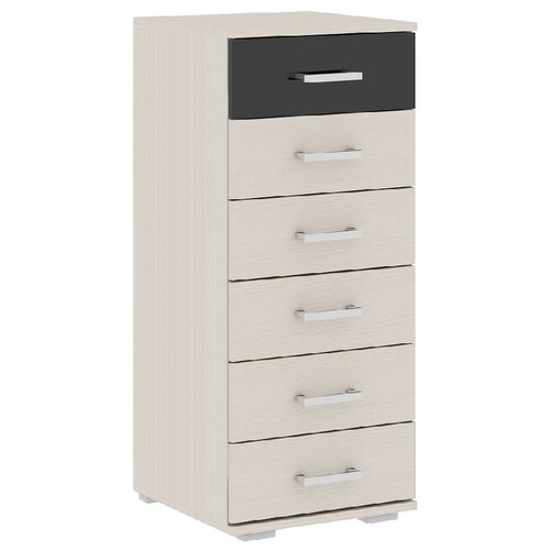 Le modèle est réalisé en panneaux de particules stratifiés. Le produit est fabriqué à partir de matériaux respectueux de l'environnement et de haute qualité et utilise des raccords modernes et fiables. Les façades des tiroirs sont décorées d'inserts brillants. La commode est équipée de six tiroirs. La commode élégante, moderne et élégante City KM-1 sera un ajout agréable et beau à votre intérieur et vous aidera à organiser vos affaires et votre linge. Avec la commode KM-1 ci-dessus, le linge et les affaires seront toujours propres et en ordre.