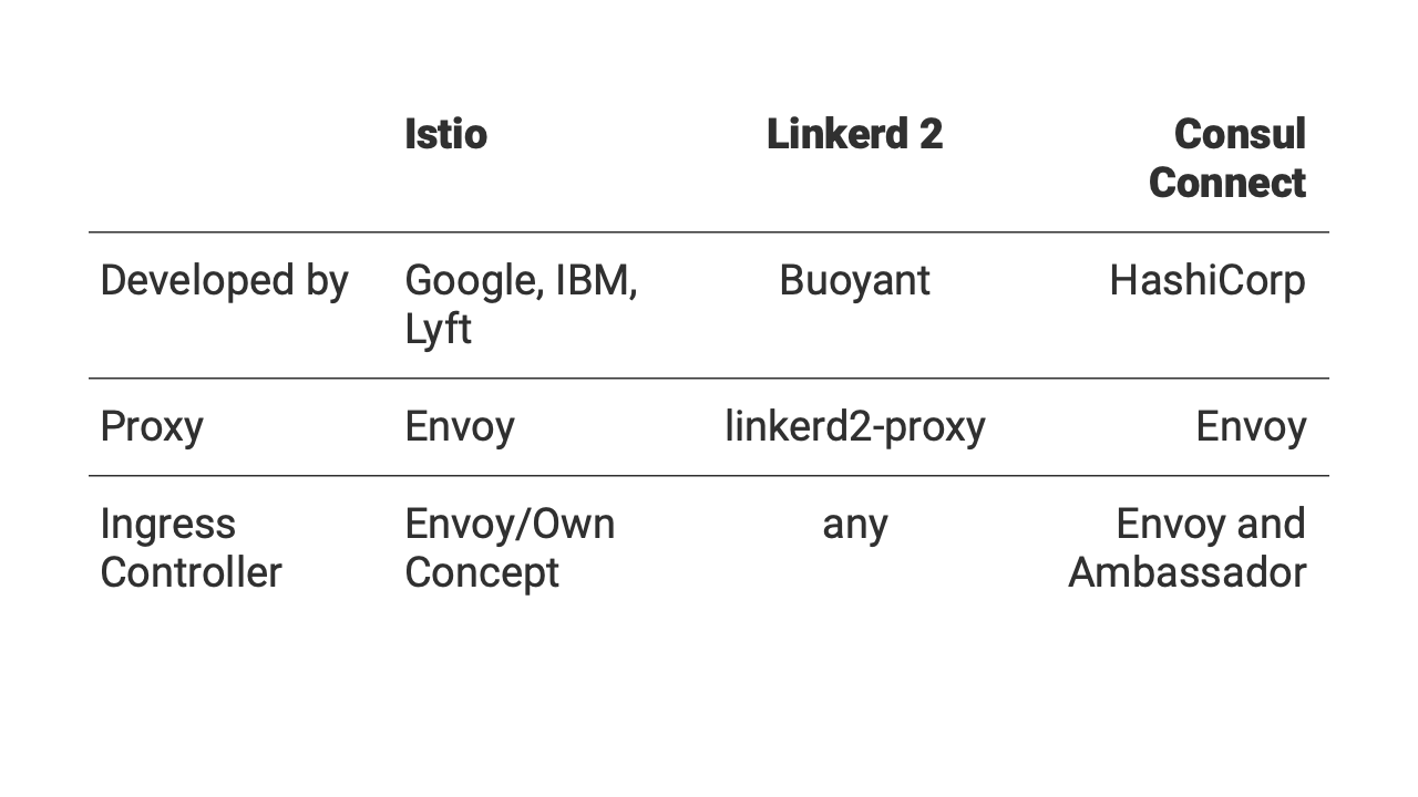Common Proxies in Service Mesh Implementations