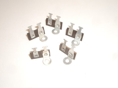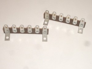 Standard size terminal strips, 1/16 thick bakelitetin plated steel solder lugs and brackets on 3/8" centers . 6 lug, 1 ground .