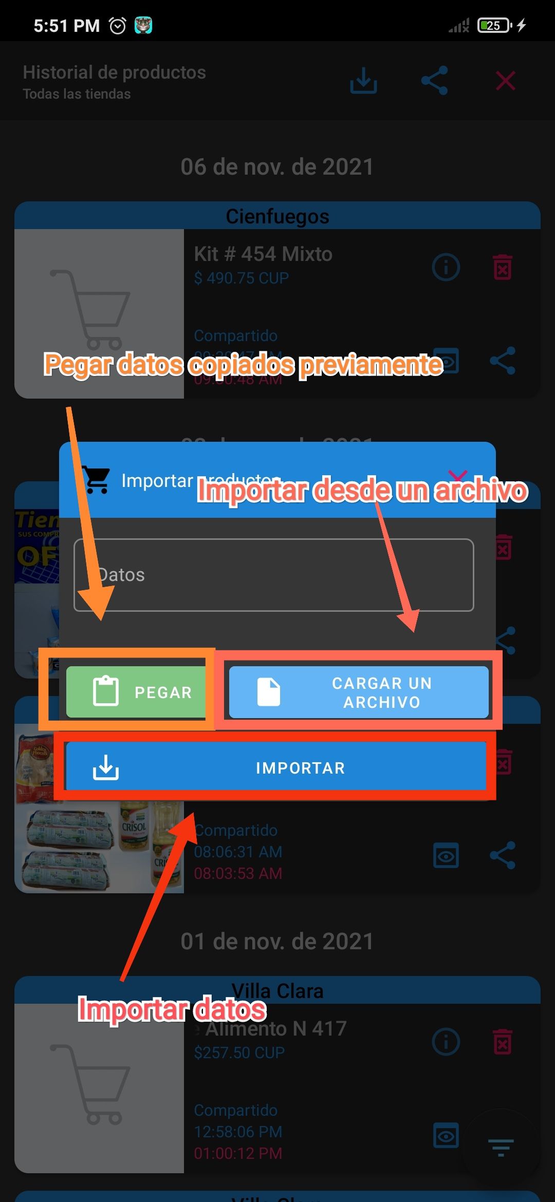 Ventana de importar producto