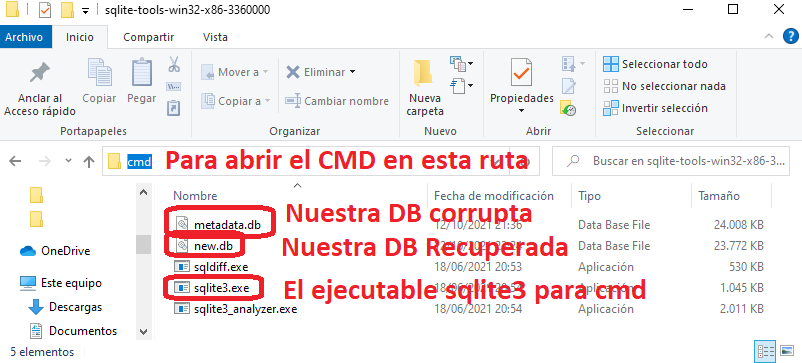 Para ejecutar este mismo comando en windows deberemos descargar los ejecutables .exe de sqlite3 para poder usarlo desde ms2 o cmd.