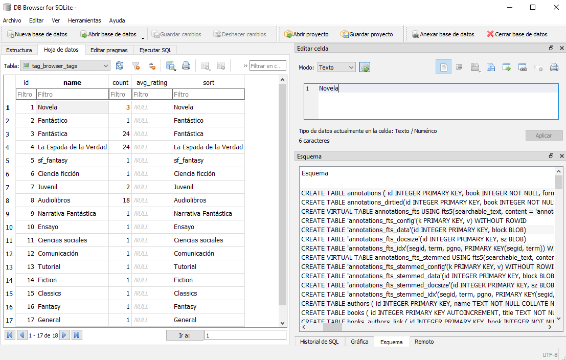 i queremos comprobar el estado de la DB (base de datos) de calibre (o cualquier otra sqlite3)