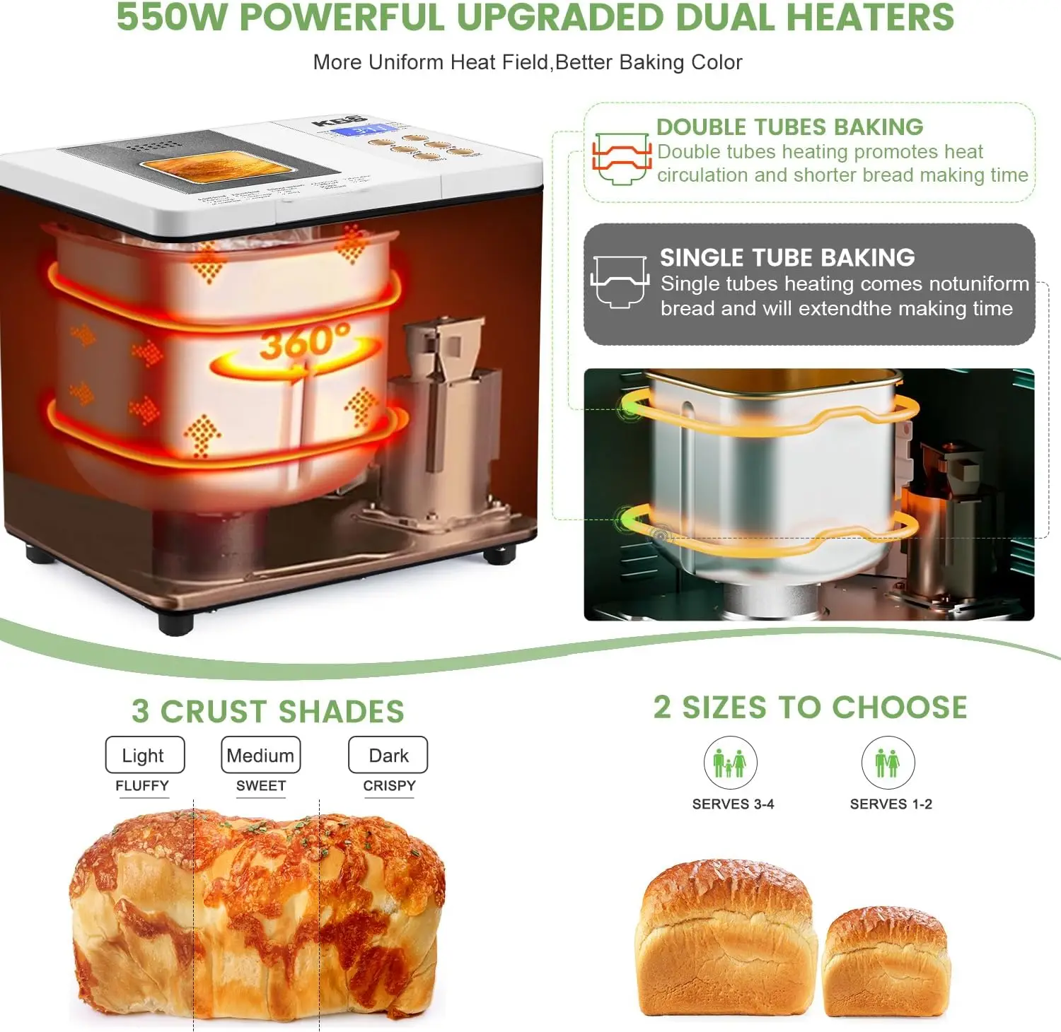 Compact Bread Machine with Dual-Heaters, 1.5LB Stainless Steel Auto Bread Maker with 2 Loaf sizes & 3 Crust Colors, Nonstick - Купить с бесплатной доставкой