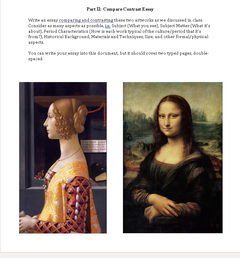 Compare and Contrast Art Essay Sample