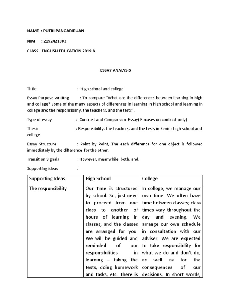 (DOC) Compare and Contrast High School and College Essay . . .