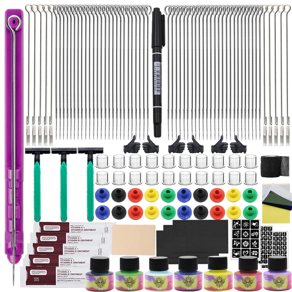 Complete 3D Hand Poke and Stick Tattoo Kit DIY Handmade Makeup Tools Tattoo Ink Needles Set Tattoo Sticker for Tattoo Supplies - Купить с бесплатной доставкой