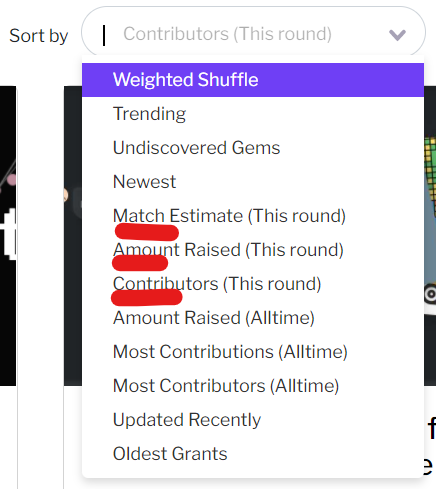 An easier way to filter projects is to simply sort by either Match Estimate/Amount Raised/Contributors.